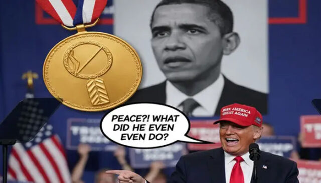সাবেক মার্কিন প্রেসিডেন্ট বারাক ওবামার শান্তিতে নোবেল পুরস্কার পাওয়া নিয়ে বর্তমান মার্কিন প্রেসিডেন্ট ডোনাল্ড ট্রাম্প কটাক্ষ করেছেন।