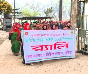 এ সময় আরও উপস্থিত ছিলেন মোহাম্মদ শফিকুল ইসলাম, ইউএভিডিও (সদর); রীনা খাতুন, ইউএভিডিও (দৌলতপুর); মো. আশেদ মাহামুদ, উপজেলা প্রশিক্ষক (কুষ্টিয়া সদর); সৈয়দা শাহানা সুলতানা, উপজেলা প্রশিক্ষিকা (দৌলতপুর)সহ বিভিন্ন পর্যায়ের ভিডিপি সদস্য ও সদস্যাবৃন্দ।
