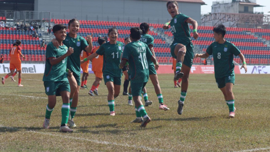 ম্যাচের ২৯ মিনিটে দলের হয়ে প্রথম গোলটি করেন অধিনায়ক অর্পিতা বিশ্বাস। তার নেতৃত্বে আত্মবিশ্বাস পায় দল। ৪০ মিনিটে আলপি আক্তার ব্যবধান দ্বিগুণ করলে আরও চাপে পড়ে ভারত।