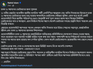 মোঃ নাহিদ ইসলাম-এর সামাজিক যোগাযোগমাধ্যমে প্রকাশিত পোস্ট